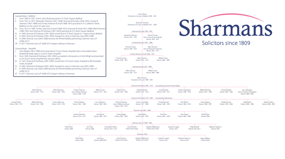Please find below a full history of Sharmans. This family tree includes a full list of all the partners of the firm since its creation in 1809.